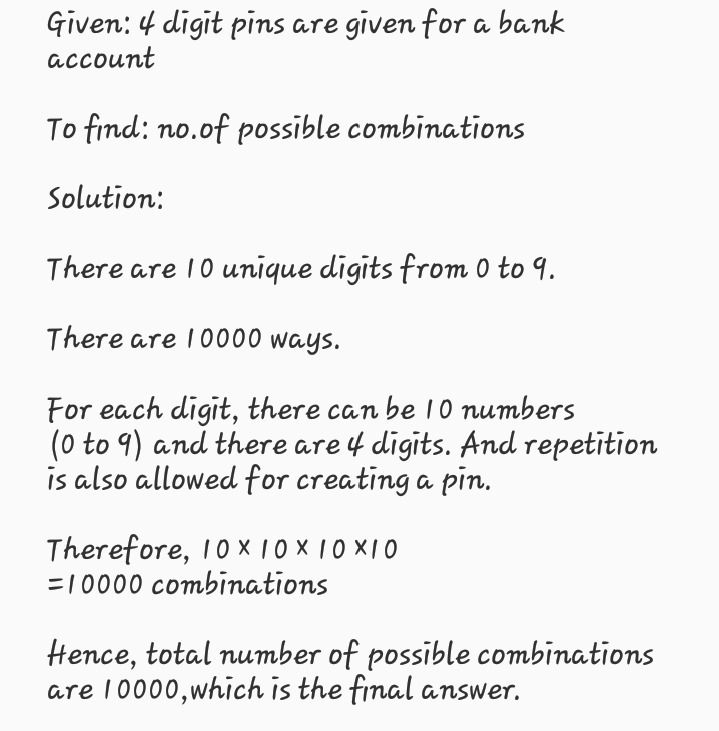 How Many Possible Combinations Of 4 Numbers Without Repeating : We can choose the next number from the remaining 99 numbers, then 98, then 97.. The number of possible combinations with 4 numbers without repetition is 15. We can choose the next number from the remaining 99 numbers, then 98, then 97. The formula we use to calculate the number of n element combinations. But three numbers are already used to fill up first, second and third blanks so (7 possible values) so we can create 9*9*8*7 numbers. 3rd digit can be any number.